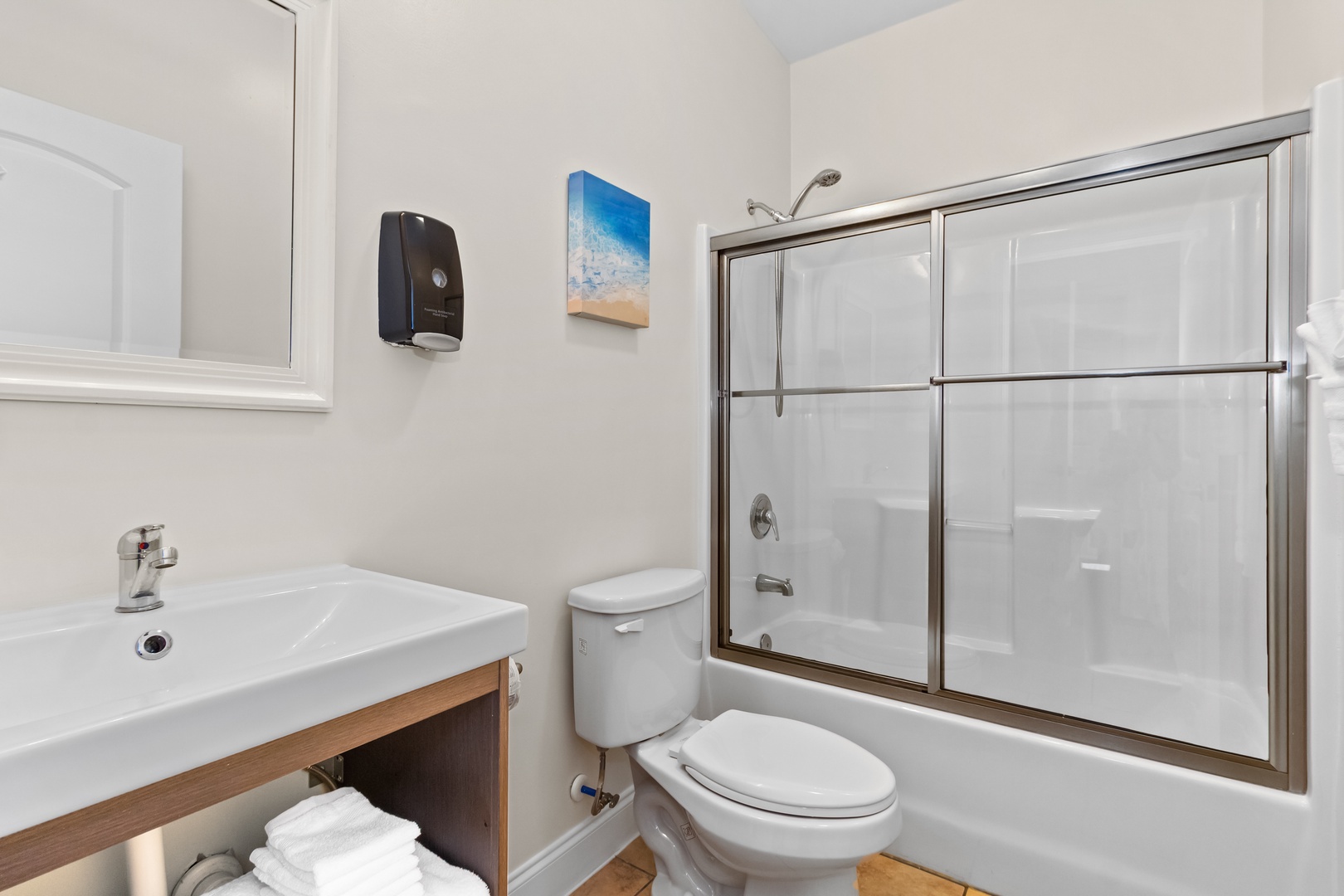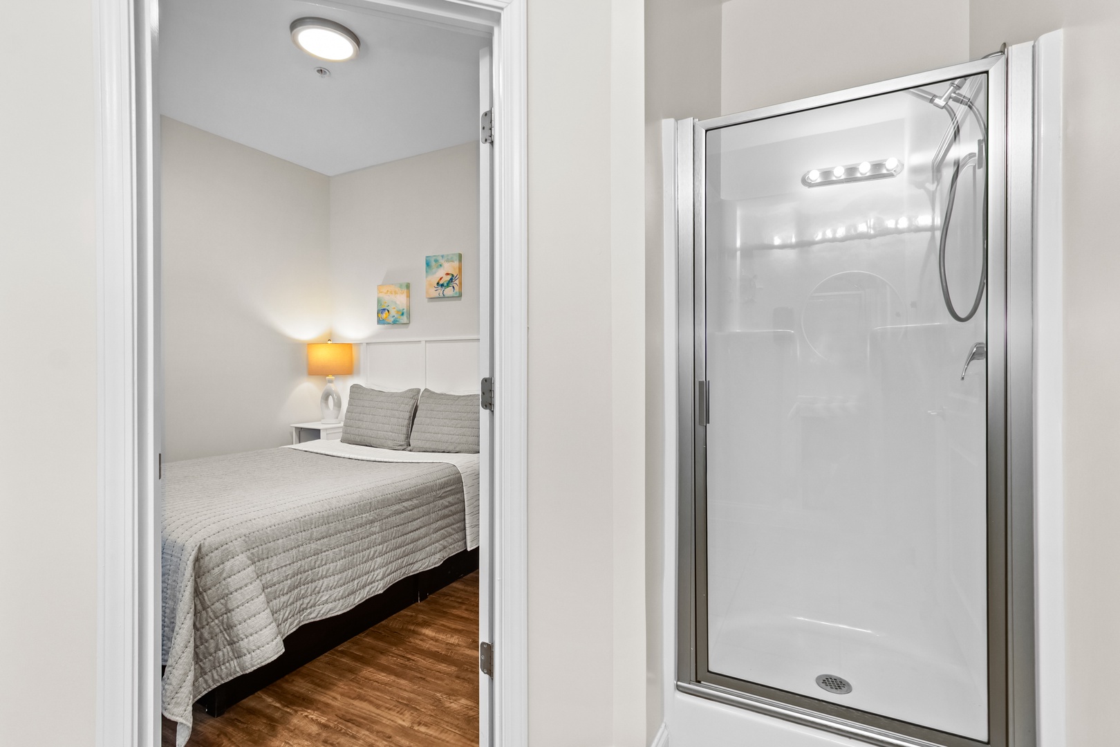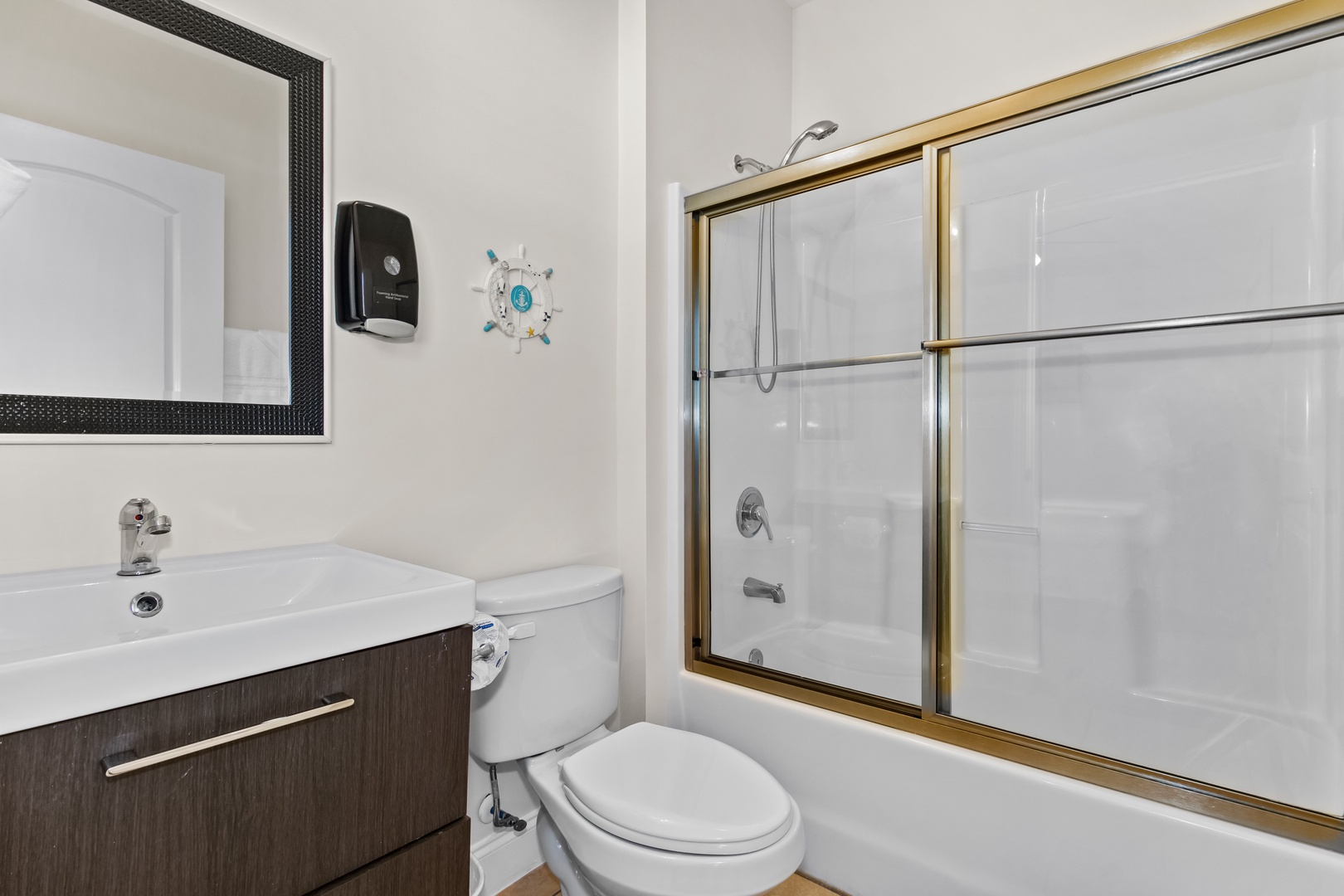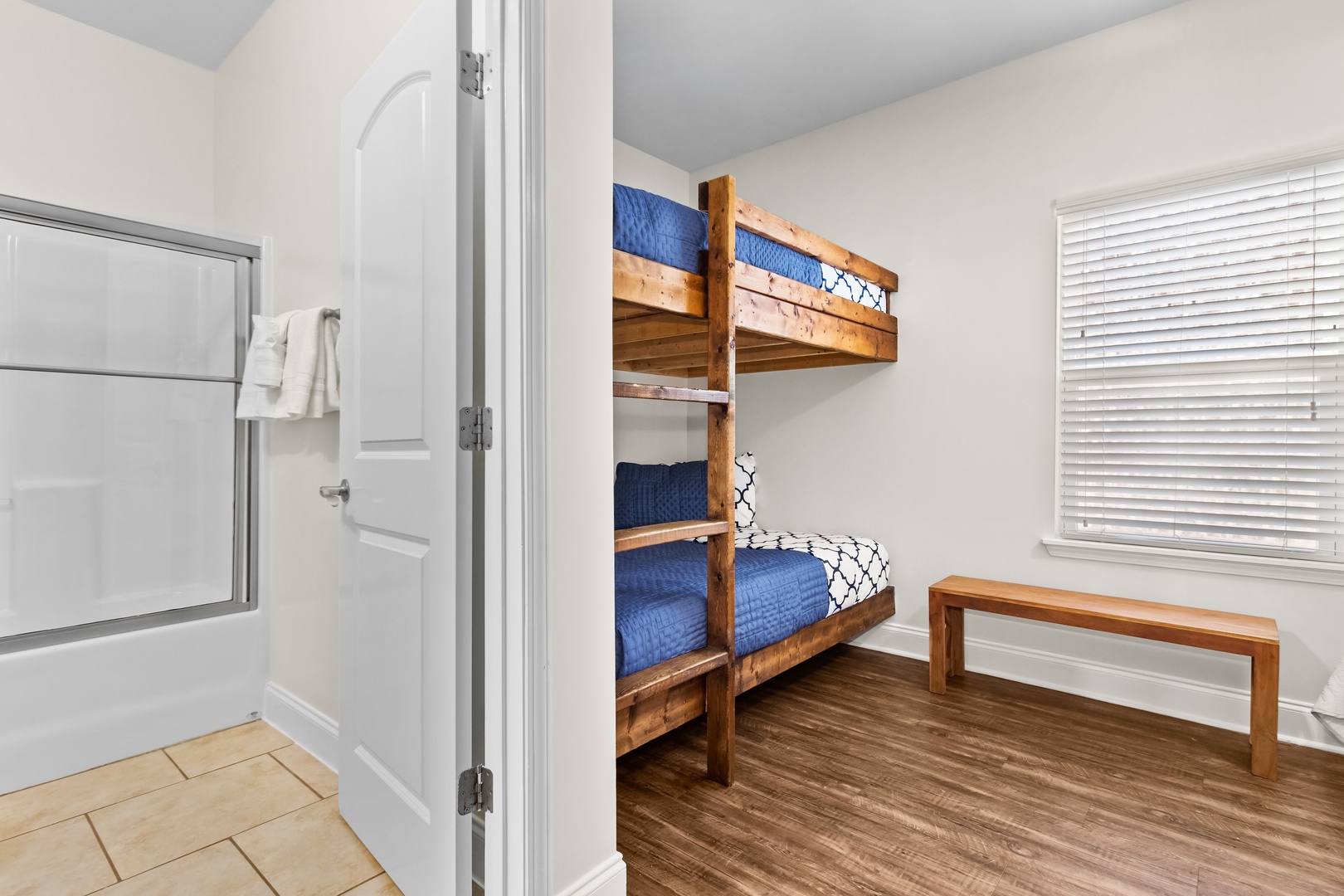 10 Queen and f/f bunk bed (Shared Hallway) Tub/Shower