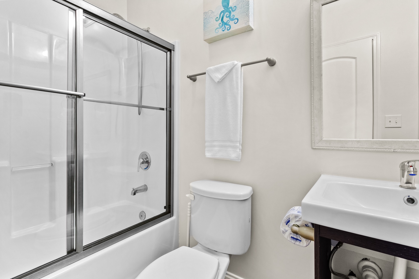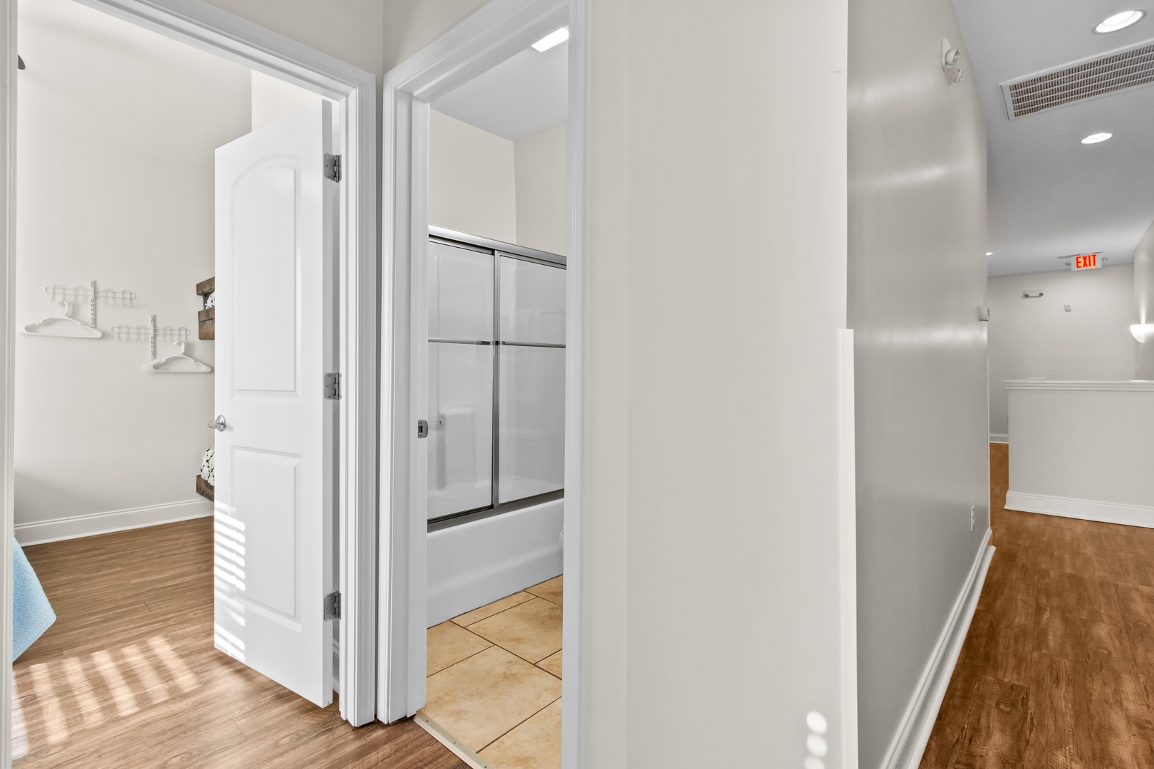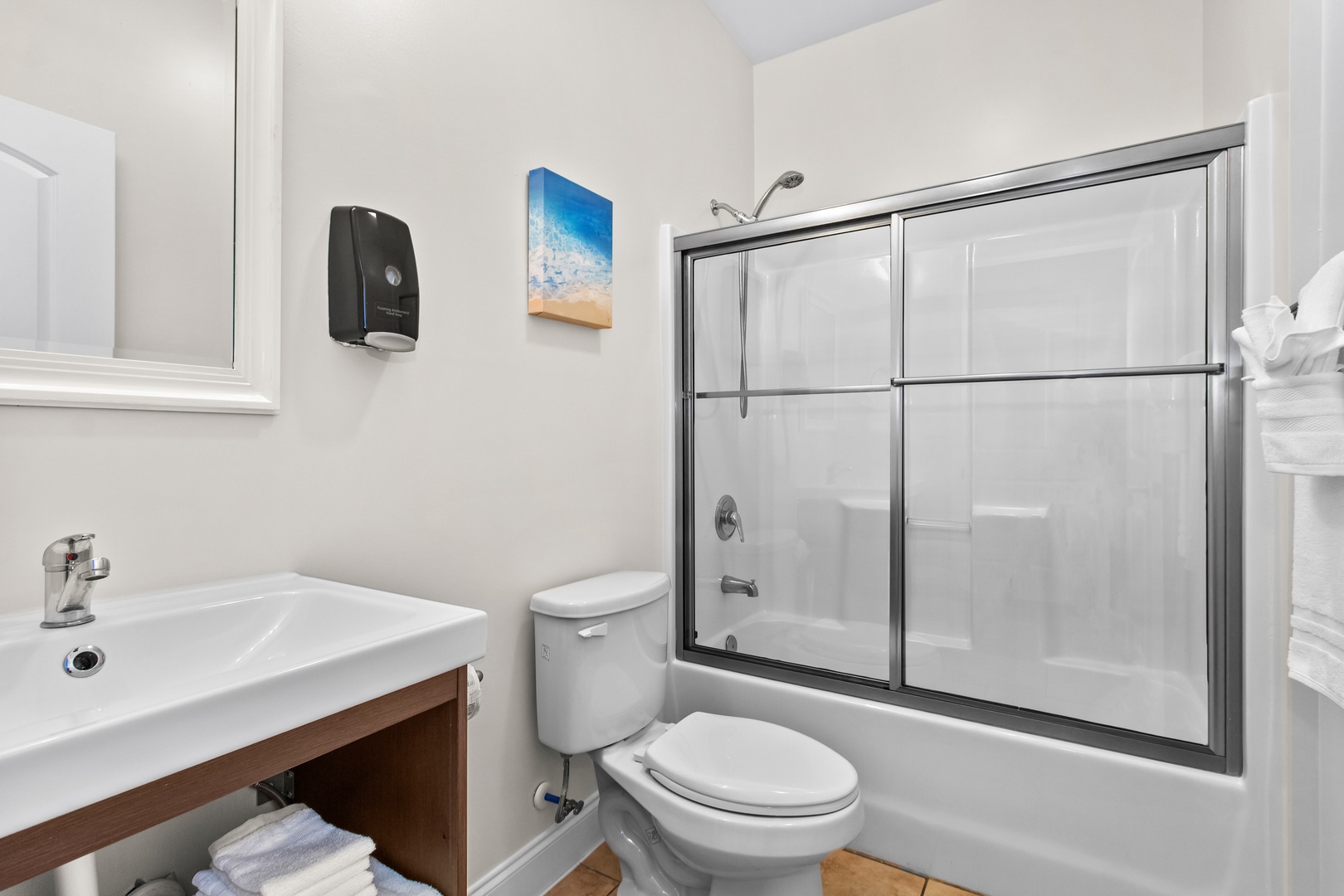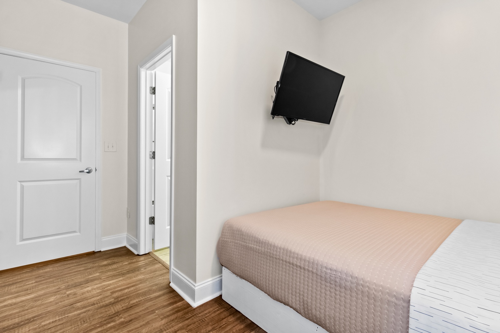 10 Queen and f/f bunk bed (Shared Hallway) Tub/Shower