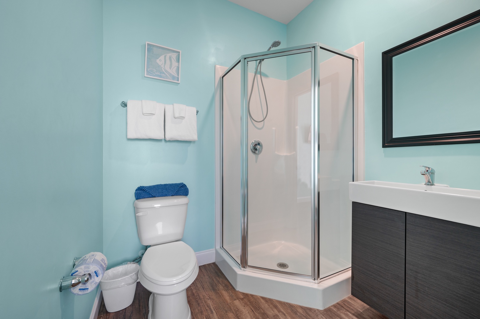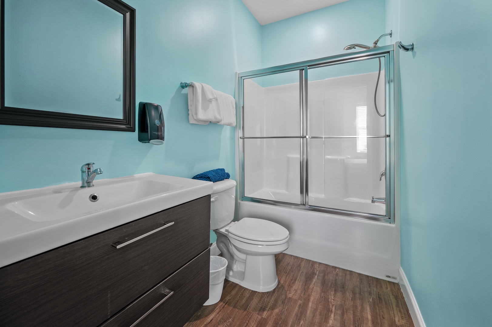 14 Queen and 3 sets of f/f bunk beds Tub/Shower