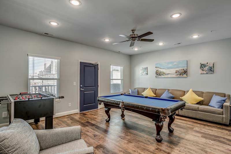 *Game room with billiards, foosball, spectator seating and a 60" television