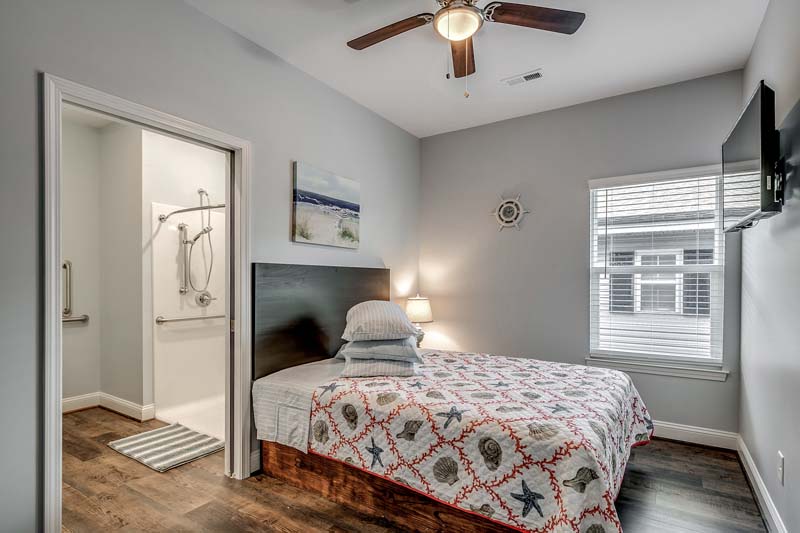 1 Queen Roll-in shower w/grab bars and toilet w/grab bars