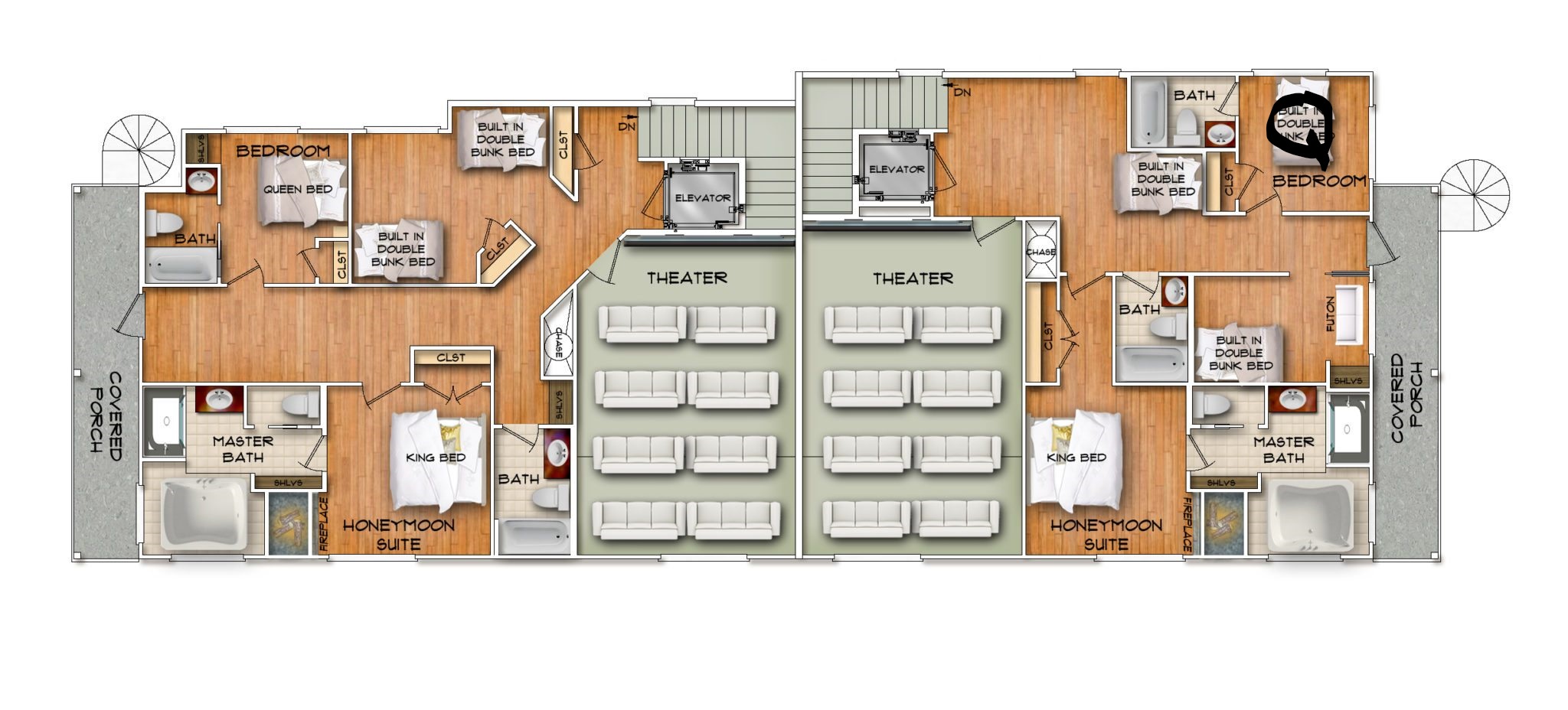 We offer many features that you are not able to find in a hotel. Feel protected knowing the air circulating in your property is not shared with others outside of your guests. Each property (each unit if duplex) has its own HVAC system with each floor having a separate system. We offer private pools, private elevators, private media rooms, private game areas and great locations.